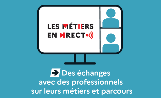 " Les métiers en direct " est une série de rencontres en visioconférences qui permettent aux élèves de la 4e à la 1re d’entrer dans une entreprise et de découvrir les parcours de professionnels issus de secteurs variés. Des femmes et des hommes, des professionnels débutants ou expérimentés, issus de milieux urbains ou ruraux, ayant eu un parcours de formation classique ou atypique, ayant expérimenté l’apprentissage ou non, témoignent de leurs parcours d’études et professionnels depuis le collège.